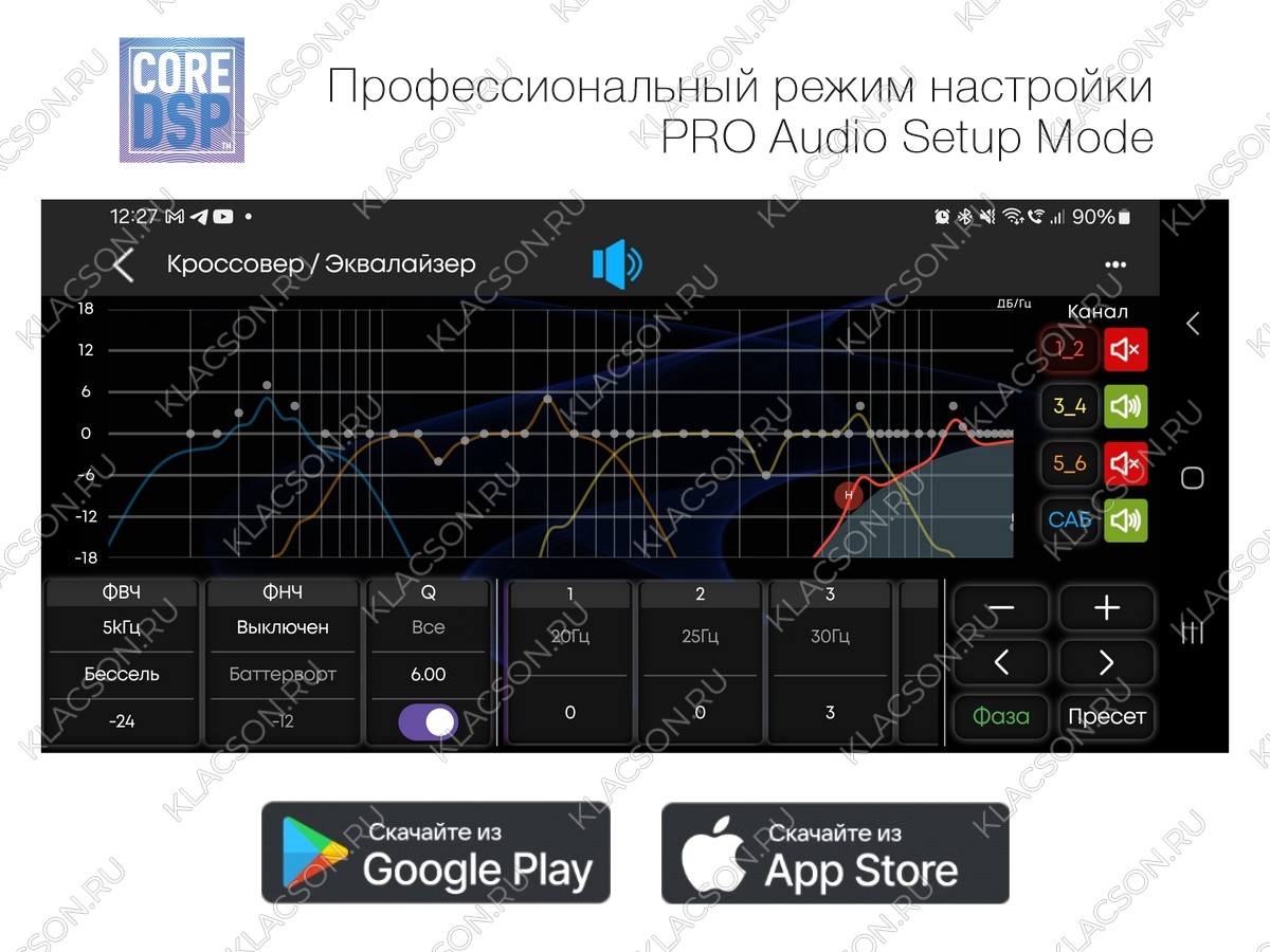 1-6 каналы: HPF (ФВЧ) / LPF (ФНЧ): 20 Гц — 12,5 кГц / Отключен