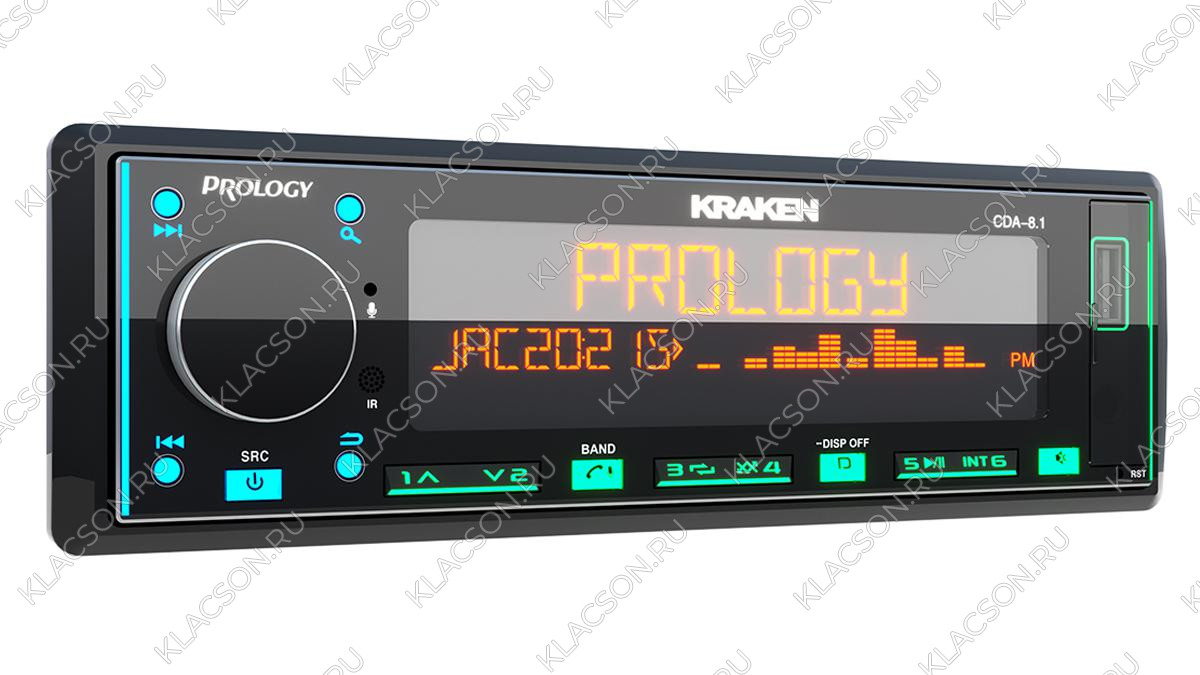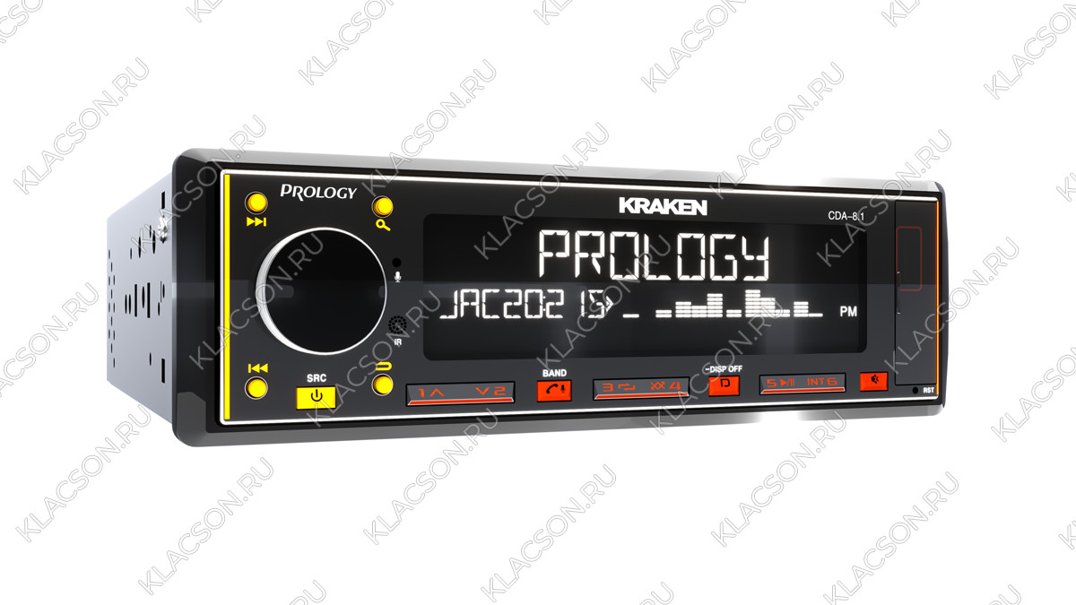 PROLOGY CDA-8.1 KRAKEN — FM / USB / ВТ ресивер с Bluetooth, стандартного размера 1DIN, который обеспечивает прием радиостанций в диапазонах FM/УКВ, воспроизведение аудиофайлов MP3, WAV и FLAC форматов, записанных на USB-накопители, передачу звука с внешних источников через линейный аудиовход и беспроводной интерфейс Bluetooth (ver. 4,2).. Кроме того, устройством можно управлять с помощью приложения, установленного на Ваш смартфон с операционной системой Android/iOS