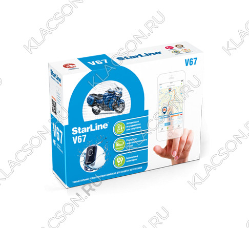 Охранно-поисковая система StarLine Moto V67 является аналогом системы StarLine Moto V66, но отличается от нее наличием GPS-маяка StarLine M17 в комплектации.