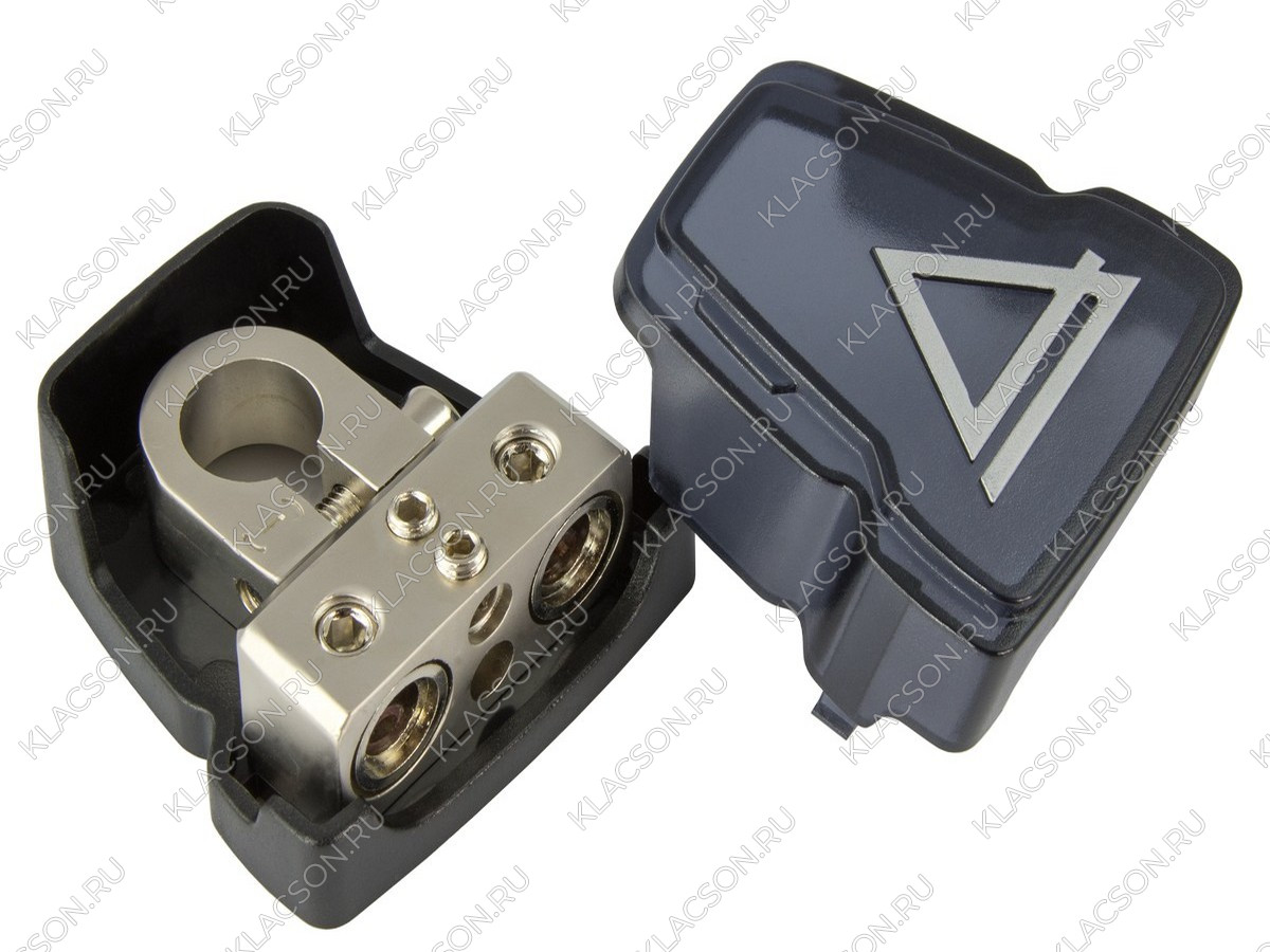 Клемма аккумулятора изолированная.Вход 2 х 20-50mm2 (4-0AWG) + 2 x 8mm2 (8AWG).Пластиковый матовый защитный кожух.Отрицательная.Упаковка — блистер.