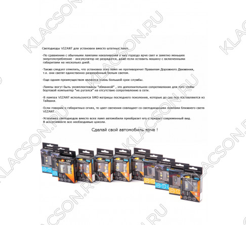 Светодиоды VIZANT для установки вместо штатных ламп.