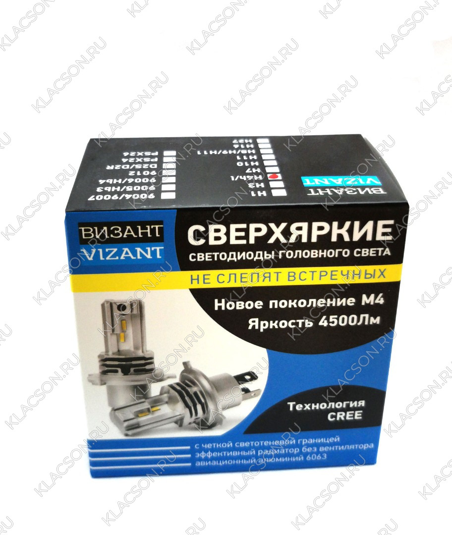 Светодиодные лампы Vizant M4 цоколь H7 с чипом CREE Tech 4500lm 5000k (цена за 2 лампы)