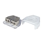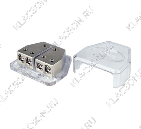 Высококачественный распределитель питания для подключения автомобильных усилителей мощности, с входными терминалами 0Ga, выходными терминалами 4Ga, переходными втулками и винтовыми зажимами.